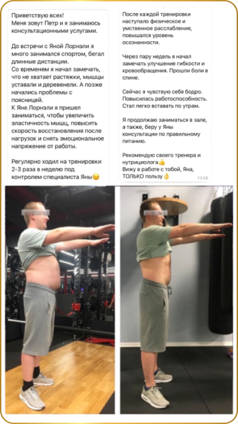 - Проведение 3-х регулярных консультационно-обучающих встреч-исследований в течении месяца с health-коучем