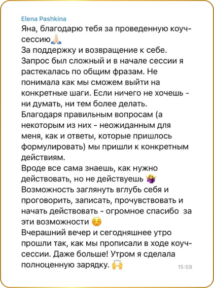 На протяжении всего периода ведения я сопровождаю вас в чате, отвечаю на все возникающие вопросы, делюсь гайдами, полезными чек-листами, оздоровительными техниками, поддерживаю, корректирую и даю рекомендации, чтобы в нужный момент вы получили необходимый комментарий, мотивацию и пути решения.